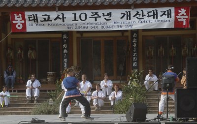 Demonstration at Mountain Spirit Temple, Tehachapi, CAThe KUDK annual retreat and demo was held the weekend of September 19, 2004 at the Mountain Spirit Temple in Tehachapee, California. This was the 10-year commemoration celebration of the founding of the Mountain Spirit Temple, and included the dedication of a new temple bell.
